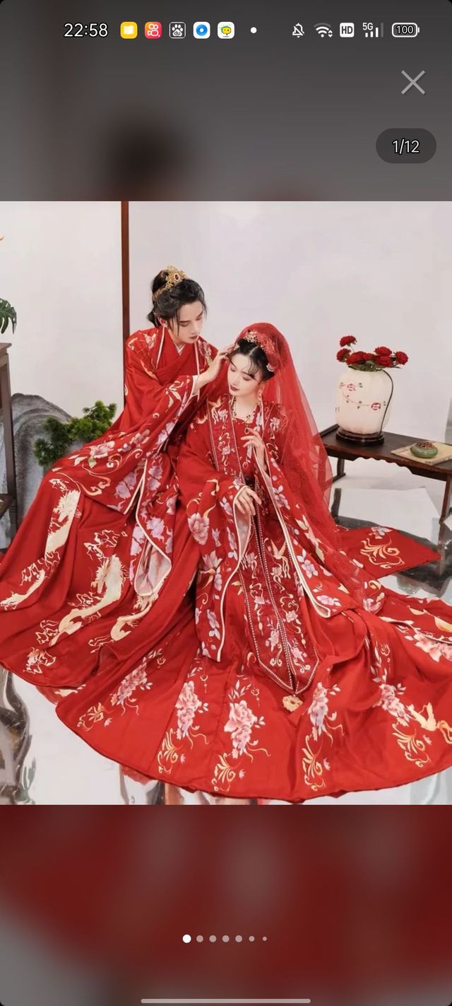那天晚上,宸王殿下便早早让宾客么回去,自己进了婚房,看着身穿红色婚服的小姐,婚服整体呈红色就像一只高贵的火凤凰一样,头戴凤冠,青葱玉指上拿着一把凤凰团扇,婚服采用了大面积的红色和用金丝线缝制出的金色凤凰,就如同她这个人一样高贵冷艳优雅矜持