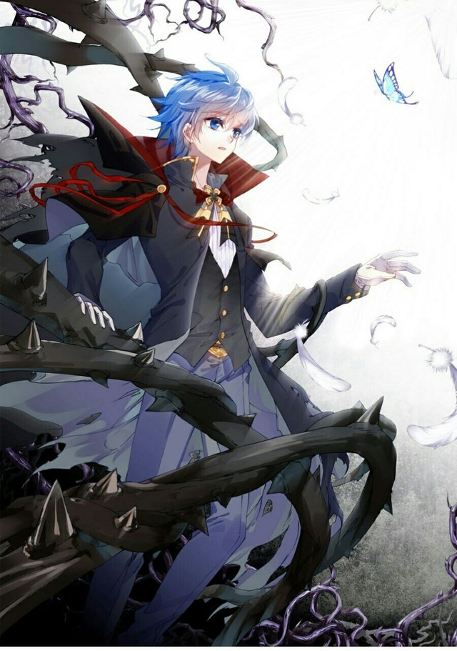 一个穿着深色西装,脸上带着微笑,给人如沐春风的男子揽着一个同样也有粉蓝色的头发的男子走了进来。