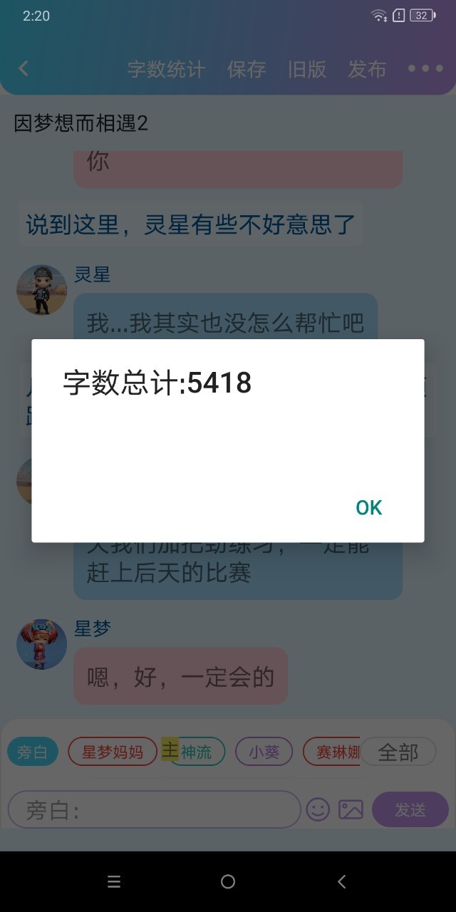星梦爸爸嗯,你老师通知了(拿起手机)咳咳,尊敬的各位家长,你们好,我校即将举办校园歌唱比赛,我校诚恳的邀请您来观看这场演唱会,也来见证一下当代新时代少年少女的青春活力,选手已经到齐,下面是选手名单:神流,灵星,星流....