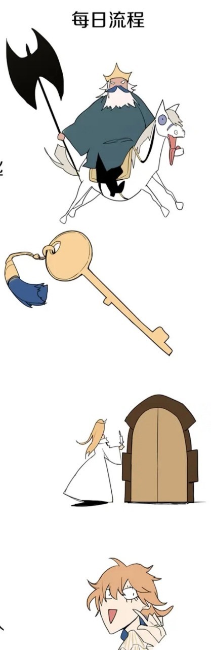 倾月白天起床—— 蓝胡子检查钥匙—— 蓝胡子出发—— 拿回钥匙—— 午夜会出现情人—— 系统强制睡眠