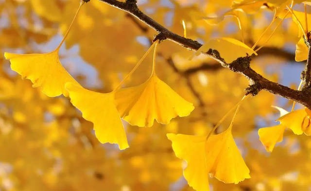 沿着树林的河流往下走,环境的氛围越来越寂静,我低着头感觉到什么东西落在我头上,拿下来一看是金黄色的银杏树叶,抬头向前远望,看见一棵高大的银杏树,碧云天,清风起,片片金黄色的银杏树叶纷纷扬扬飘落而下,自古文人墨客因它作下多少流芳千古的诗句,真是满园银杏落秋风,一树金黄一树诗