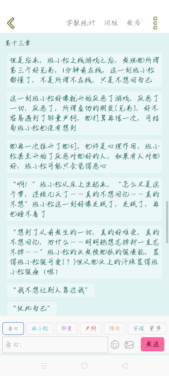 “可以把经过,告诉我么”这条消息是邬童发来的,班小松看到消息愣了半天,打出去个“?”