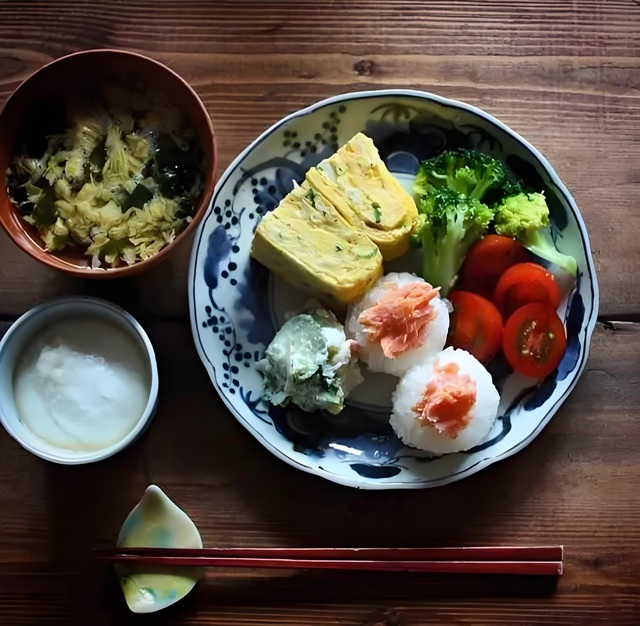 她悄无声息地步入厨房,开始了新一天的第一项任务——准备早餐。今日的菜单上,她精心策划了一顿充满和风的日式早餐,其中包括了精致的饭团、温热的味增汤,以及几样小巧而美味的腌菜