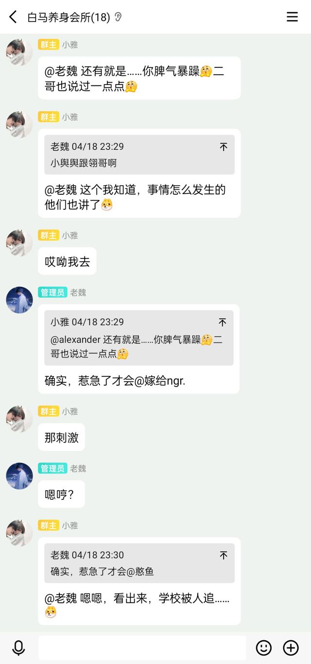 下一章 群聊天记录:聊天日常(二五)【补更五】