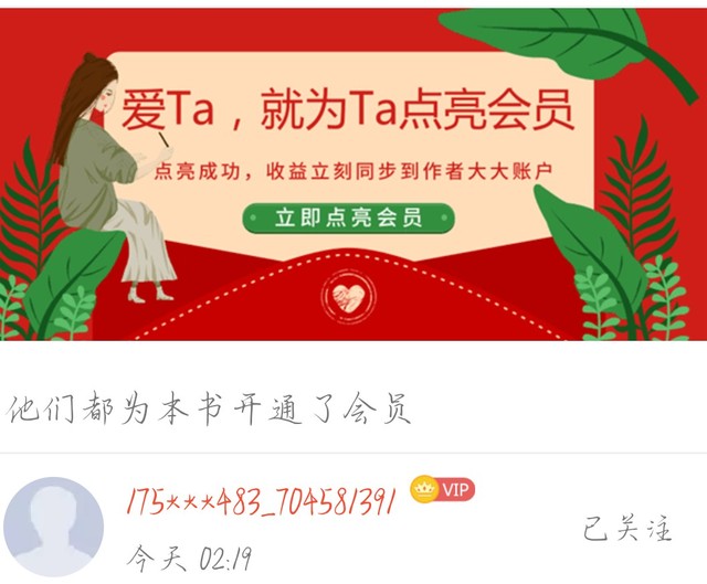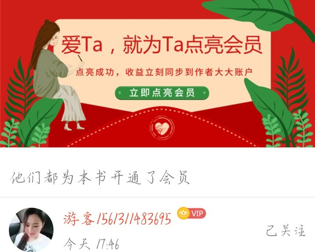 作者多谢两位读者小可爱为本书点亮了会员,正在努力码字为你们加更!