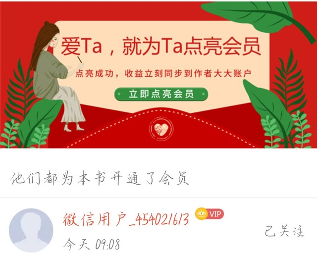 作者谢谢读者微信用户_454021613为本书点亮了会员,努力码字为你带来今日份的加更,希望大家喜欢|。・・)っ♡