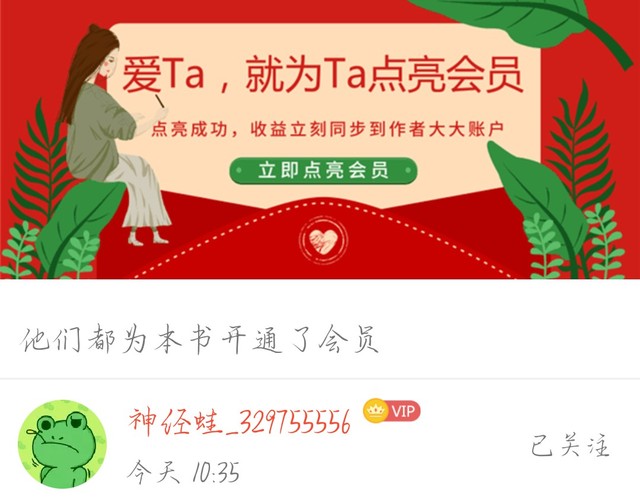 作者谢谢这位读者小可爱为本书点亮了会员,今日份的加更为你奉上。