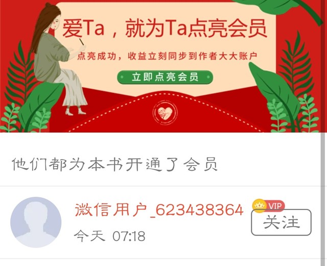 作者谢谢读者微信用户_623***364为本书点亮了6个月的会员(*๓´╰╯`๓)♡