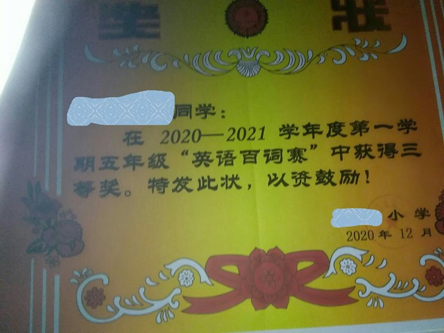 作者本人这学期里作者还获得了两个奖状