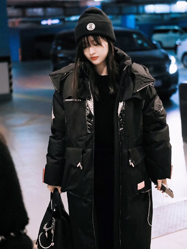 吴宣仪穿上外套,手捂着肚子。
