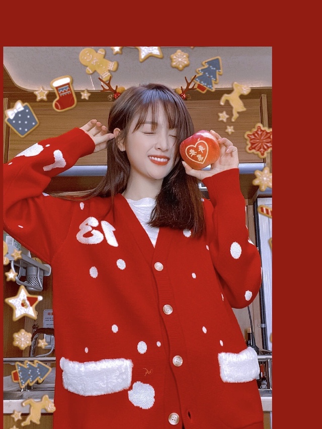 今天是平安夜,吴宣仪小可爱还在剧组里。