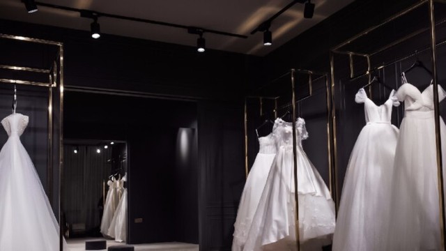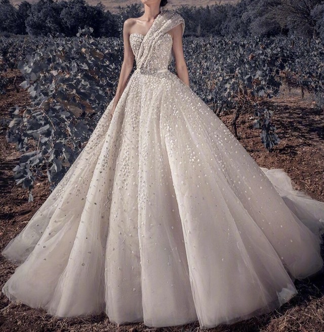 他挑了一条这里最精致的婚纱