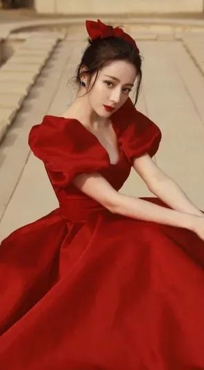 叶央央换好裙子,简单的梳了个膨松的丸子头,大红的蝶结发夹那一别,整个人气质就出来了。