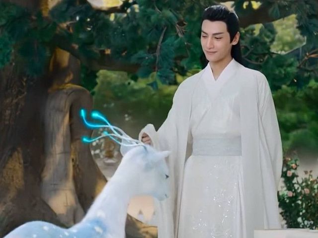直到来到一处后花园,远远的便见一白衣公子站在一鹿形兽前,温文尔雅的敲了下鹿形兽的脑袋。