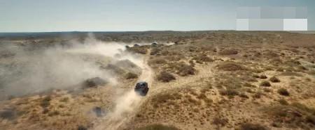 并列而行的越野车在大漠里疾行,阵阵黄沙被席卷起