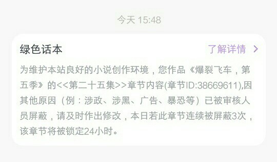 作者我现在已经把任何有可能违规的改了,再被屏蔽,我直接就给它删了