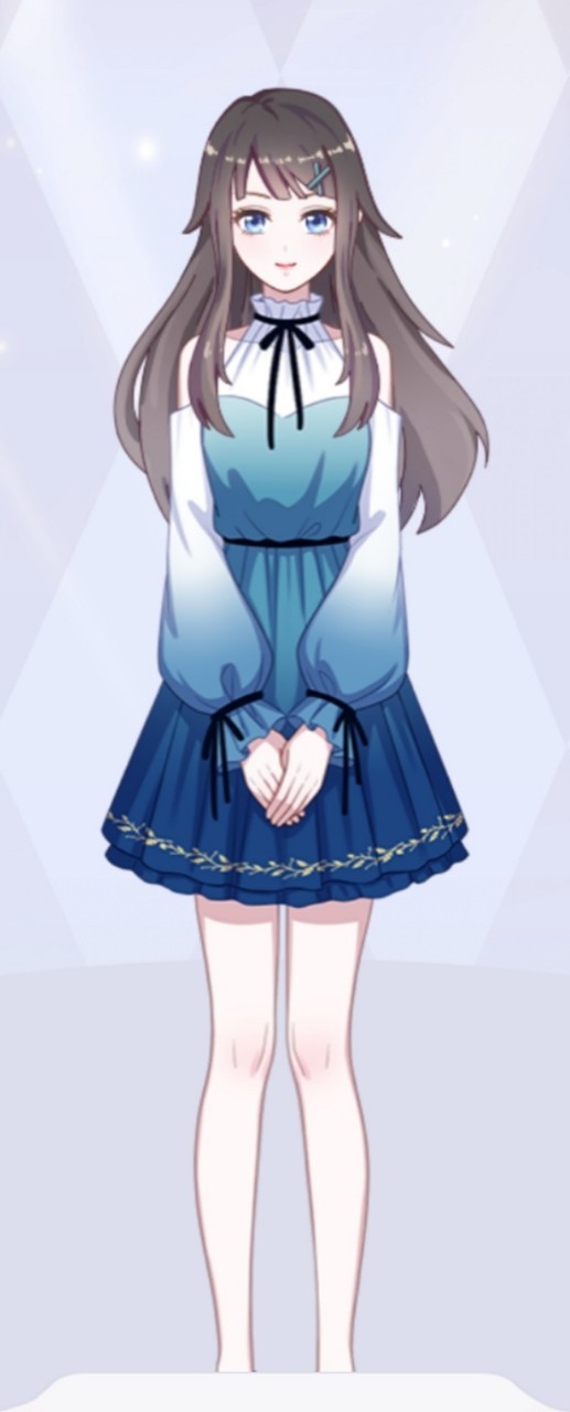一个亭亭玉立的少女缓缓的走了出来,她身穿一件简单又大气的海蓝色连衣裙,腰间、手腕处、脖子上都系上了黑色丝带,也绑上了蝴蝶结,让这条裙子精致了许多,更让她显得更小巧玲珑,惹人怜爱