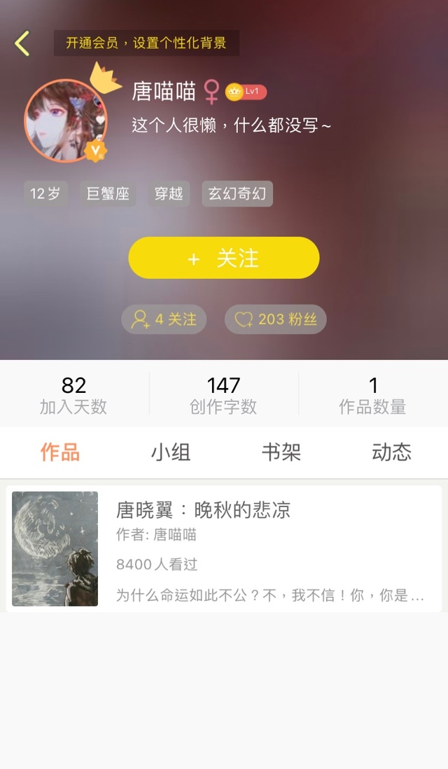 作者大大这个大大叫唐喵喵,虽然写的文不多,而且她把以前写的章节都删了,但是她是一个对自己有要求的人嗷!