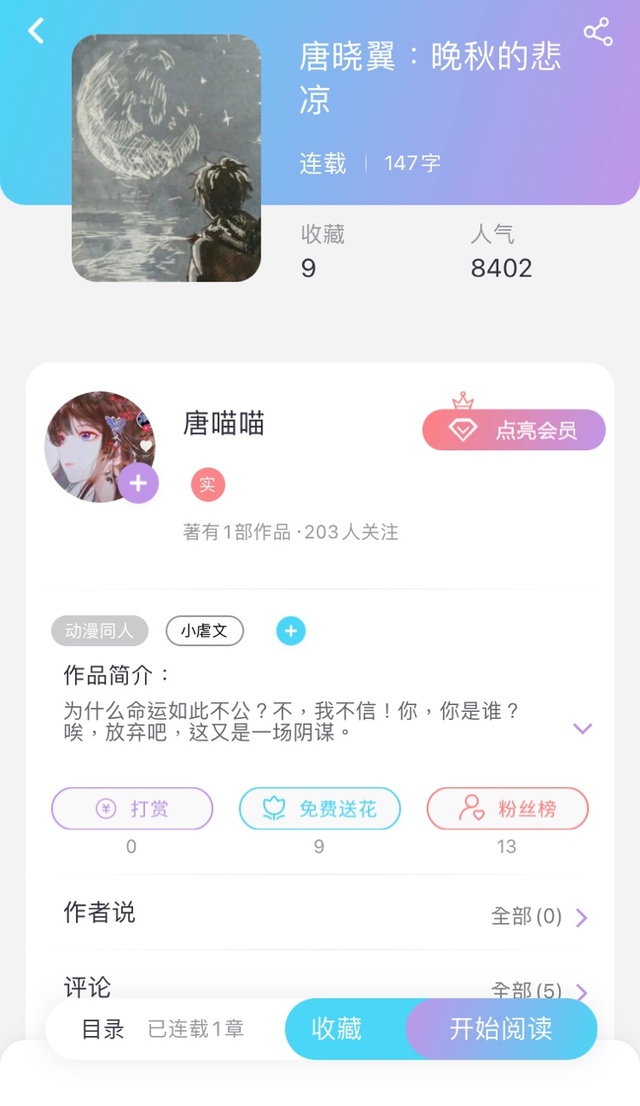 作者大大有兴趣的话,可以去她的文《唐晓翼:晚秋的悲凉》评论找她呀