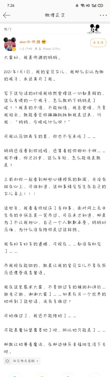 我童年回忆,巴啦啦小魔仙里面美琪的扮演者孙侨潞。因为跨年的时候和朋友喝多酒,而心脏猝死