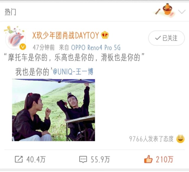 “王一博正在跟他的战哥说”