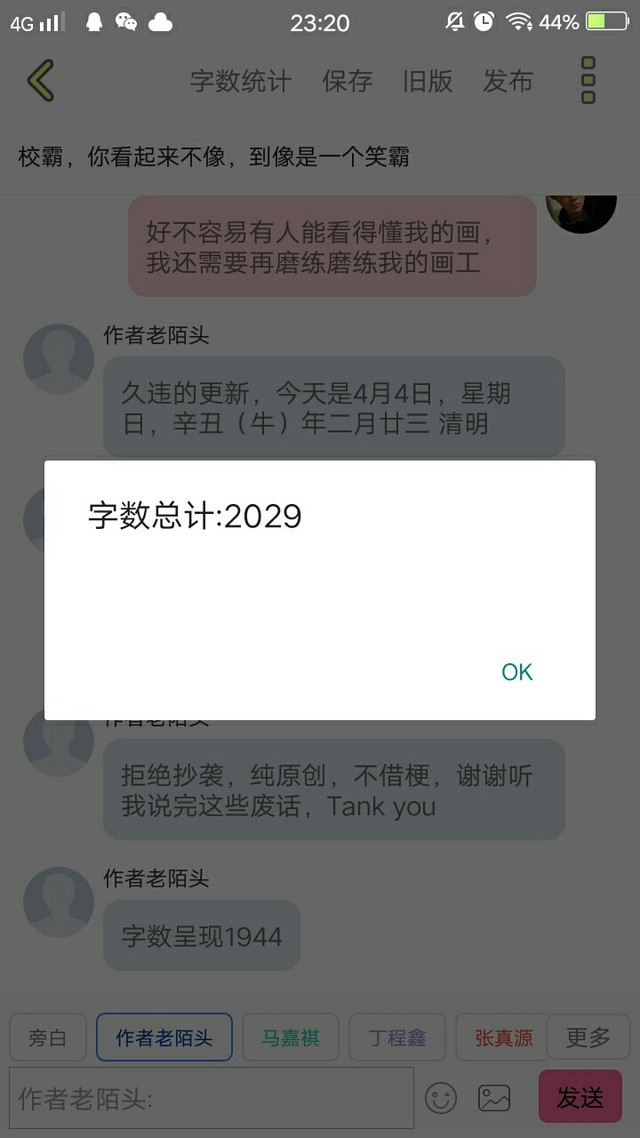 作者老陌头字数呈现2029