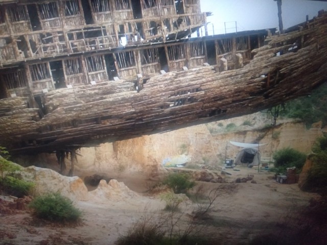 四人走到废弃沉船处