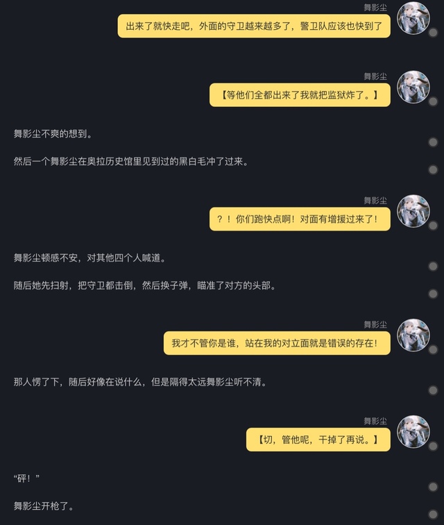 舞影尘收起手枪转身就跑,然后被那个黑白毛叫住了。