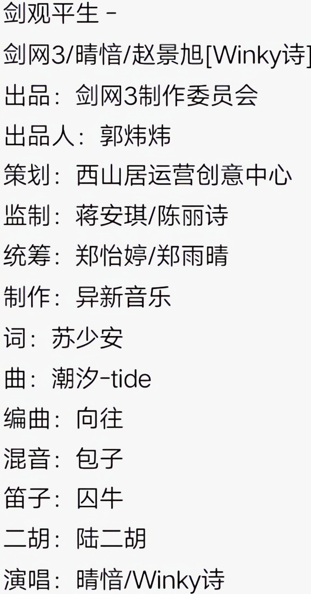 作者其实主题曲就是剑网三指尖江湖藏剑山庄宣传曲《剑观平生》,主题曲截止到1:48