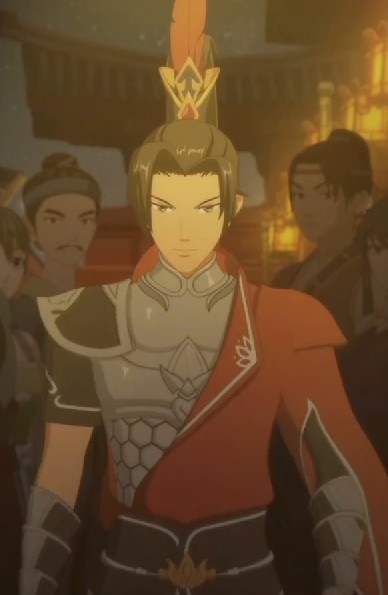 作者天策弟子一身铁甲,红色袍袖,手拿七尺长枪,下身黑色护腿和护脚,两根红须