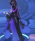 作者男友万花弟子是一身黑和半紫鞋子是黑色带跟的,眼影比较淡,手拿点穴笔