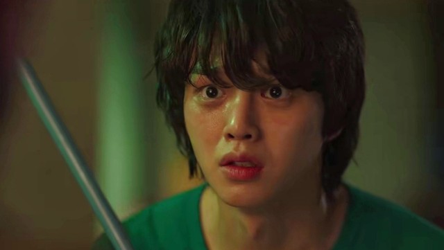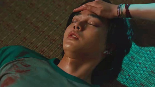 孔舒绘在和伤疤大叔的合力下把这个男生抬会自己的屋子,而她负责待在这里确保自己和男生的安全