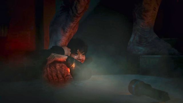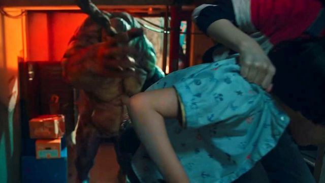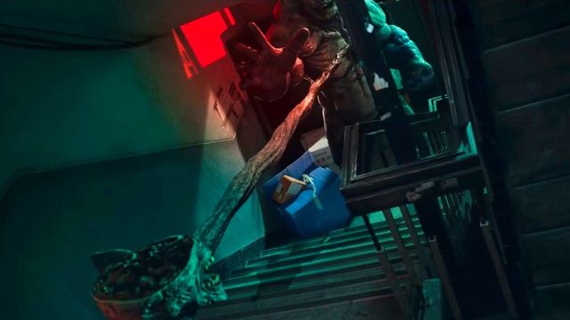 后面的两个孩子因为害怕发出声音悄悄的用手捂上了嘴,听到半脑怪渐渐走远的脚步后,孔舒绘才敢拉着两个孩子向上走,但还没走两步身后的肌肉怪追了上来