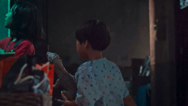 孔舒绘紧握着小男孩的手,转过头比了个嘘的手势,示意他们不要出声,半脑怪转过身子