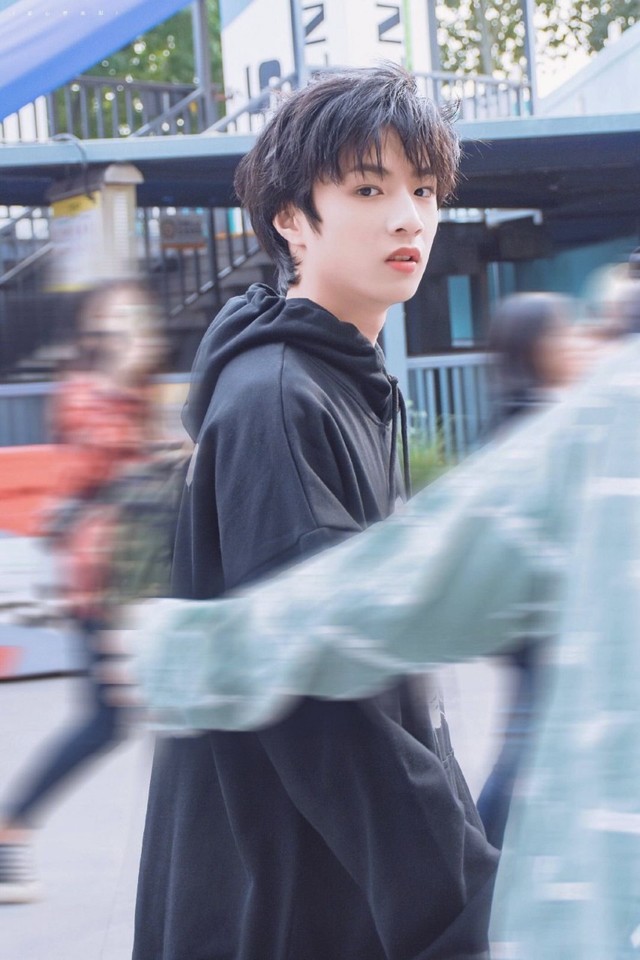 被围在中间的刘耀文,穿着浅黑色的卫衣外套,头发被风吹得乱糟糟地,让人忍不住想揉两下。