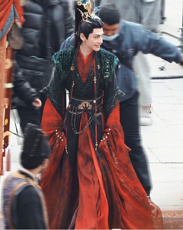 而重熙则是用金丝缠绕的桂冠束发尽显风流优雅,翩翩公子的气息一览无余,但重熙的喜服则是上身墨绿色掺着黑,让人显得更加神秘,丝丝佩环碰撞,如同悦耳丝竹。