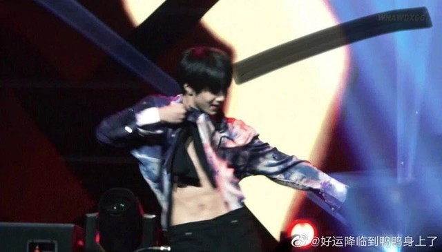 “贺峻霖拿出了限量版的黑色露腰衣”