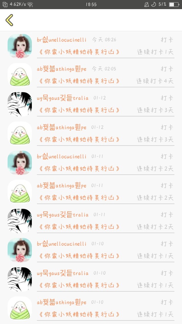Fairy宝贝上章打卡人员名单: