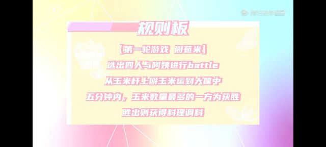 “五分钟内,玉米数量最多的一方获胜,胜出则获得料理调料。”