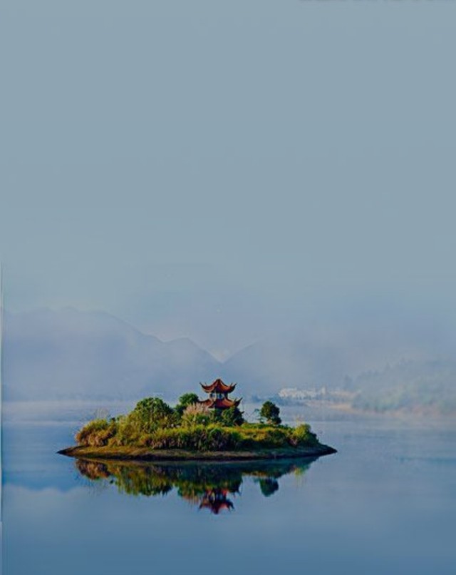 简单想象一下 湖中有一个小岛 小岛上有几个亭子中间有3个四合院