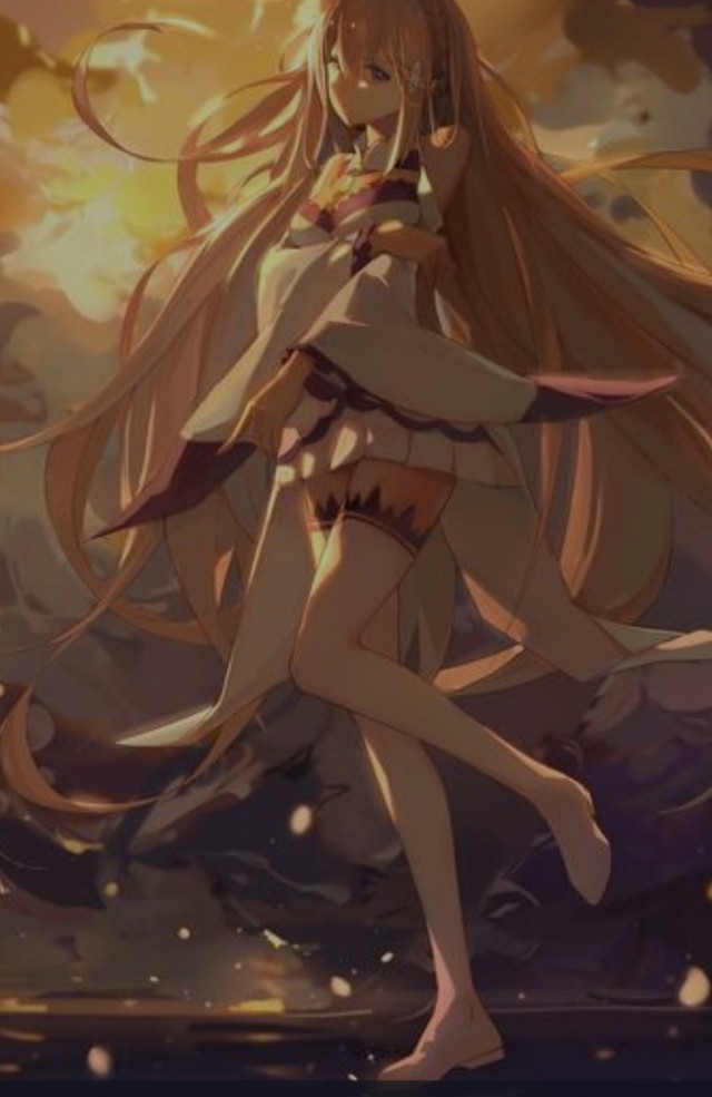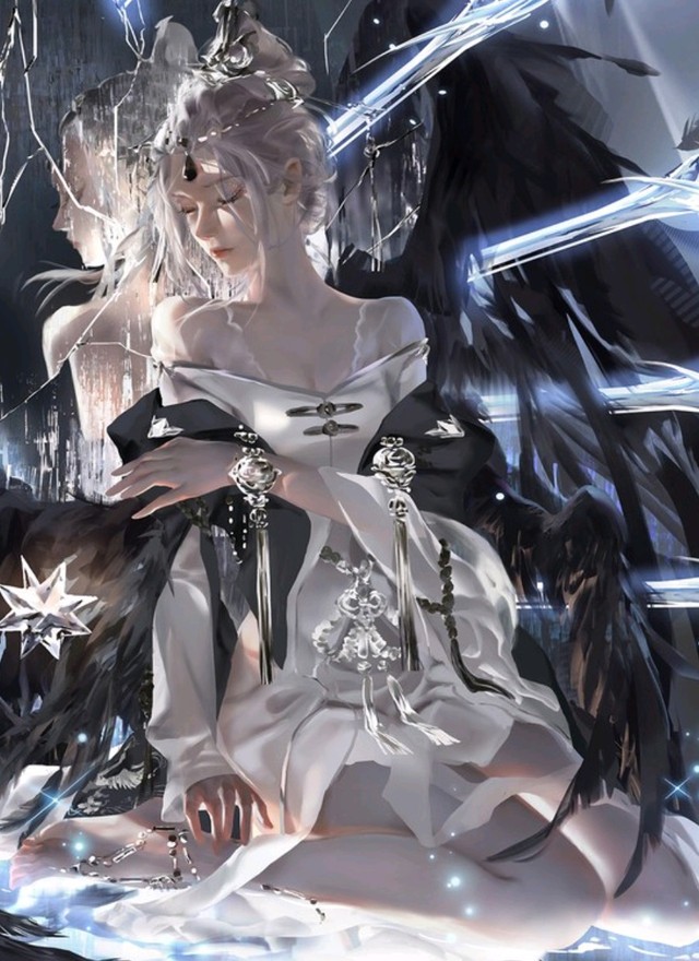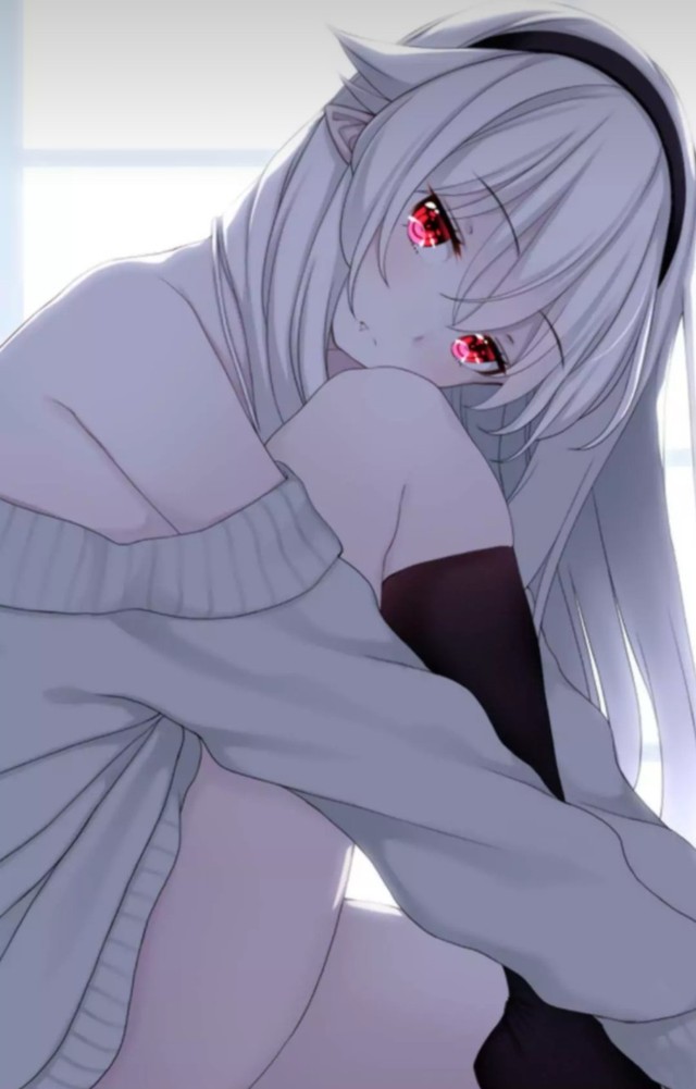 有一个身穿白衣,眼睛雪白 头发如银丝但夹着如雪的发丝及腰间 伴随着微风吹荡着 旁边的人对这位人说到