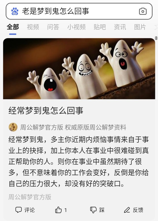 好奇的她去万能的度娘问了一个问题:“老是梦到鬼怎么回事?”