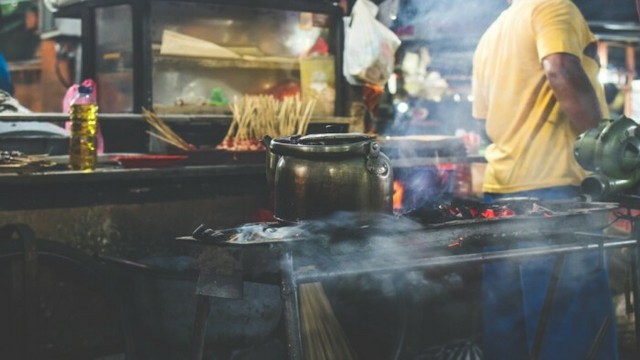 小摊的烟很大,有点呛人。