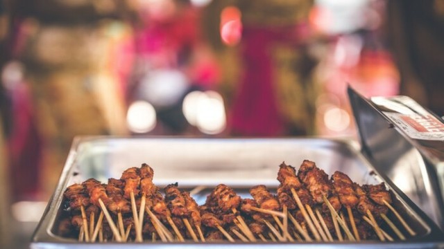 马路上的灯都亮了,许奈一拿起一串烤肉吃了起来,腮帮子鼓鼓的。