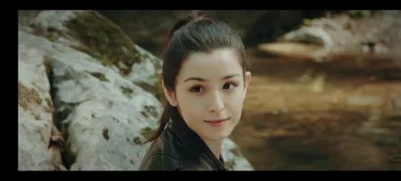 少女因在雨林中步行良久终于见到伙伴而高兴上扬的嘴角也下落