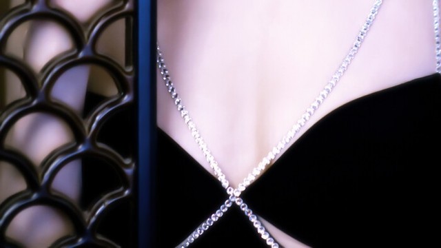 黑色的礼服衬得皮肤异常白皙,白嫩的脖颈上是搭配的钻石项链,胸前波涛汹涌让人浮想联翩,修长的双腿又长又直,连脚踝都格外好看。