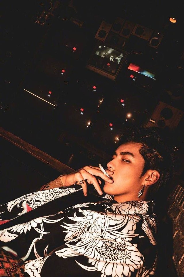 吴亦凡修长的手指夹着香烟,脸如雕刻般五官分明,有棱有角的脸俊美异常。外表看起来好象放荡不拘,其实一肚子花花肠子。