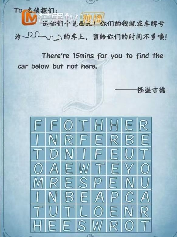 送你们个见面礼!你们的钱就在车牌号为????的车上,留给你们的时间不多喽!