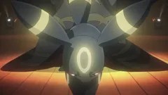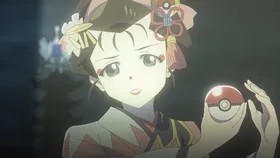 伴随着和服女孩的转身,她伸出了一只手,紫色的光芒亮出掉落在地面,一只月亮伊布出现在她的前方。