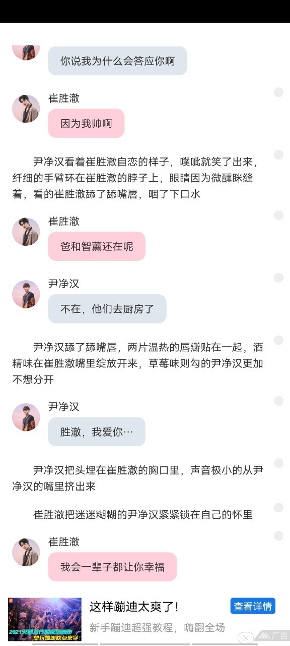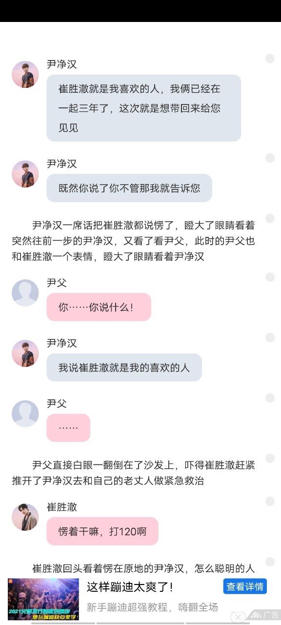 崔胜澈听到尹父夸奖自己,嘴角都快咧到后耳根了,笑的像个傻子一样的坐在尹净汉旁边